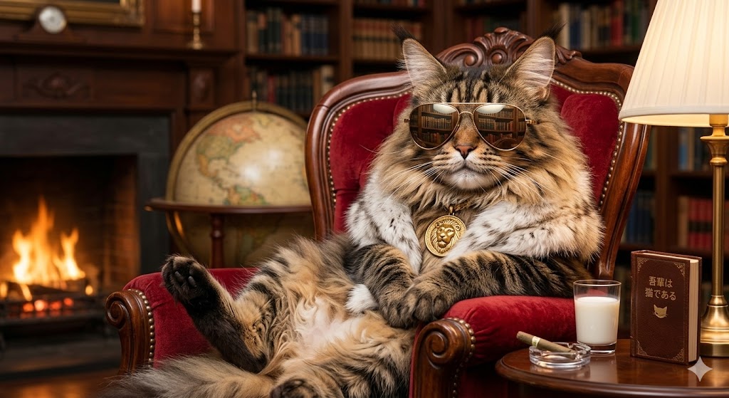 LLMであるGeminiのNano-Banana-2で生成した猫画像がかなり自然に感じたので”プロンプトの要約”と”画像”を残す 凛々しいノルウェージャンフォレストキャット ITエンジニアなメインクーン 偉そうなサングラスメインクーン